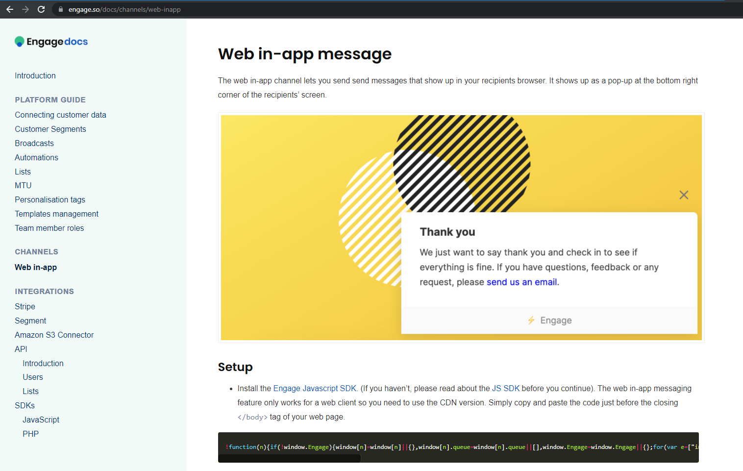 I was responsible for pair writing the ‘Engage docs’ section, breaking down complex language and making them easy to understand. We designed a searchable list of guides to the features users may want to learn about. These were detailed but written in simple and clear language. The guides were also supported with appropriate content formats (images and videos) to help users understand the features.